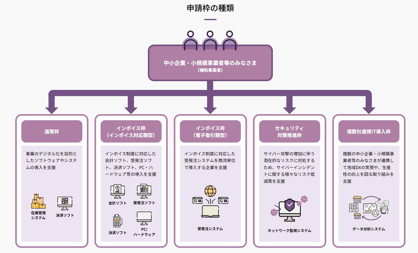 IT導入補助金は、中小企業・小規模事業者のDX推進を目的とした国の補助金制度です。i-ReporterをはじめとしたITツールの導入や、運用サポート、教育研修、帳票作成費用など、幅広い費用が補助対象になります。2025年度も、クラウド利用なら2年分の利用料やオプション費用の申請も可能です。https://it-shien.smrj.go.jp/